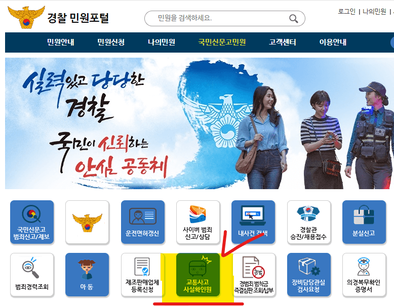 교통사고사실확인원은 경찰 민원포털을 통해 가능합니다.