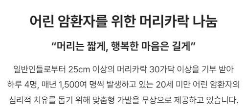 작은 기부와 봉사 중요성 사회적으로 알리기 위한 목적 기부된 머리카락이 어떻게 사용되는지 기부자와 수혜자에게 명확히 알림으로 기부 투명성 보장하고 사회적 신뢰 구축 효과