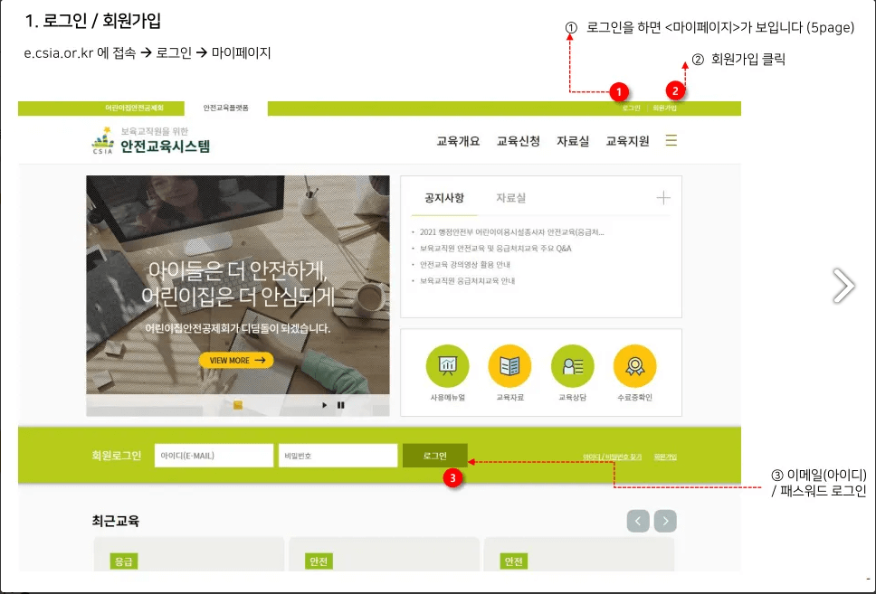 ✅안전공제회의 안전교육시스템은 어린이집 교직원을 대상으로한 안전 교육 시스템