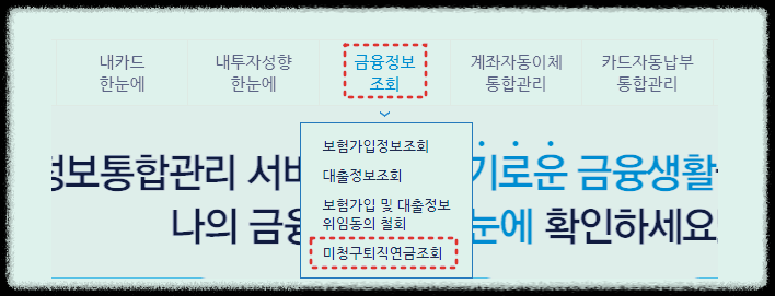 [ 금융정보조회▶미청구퇴직연금조회 순서입니다.]