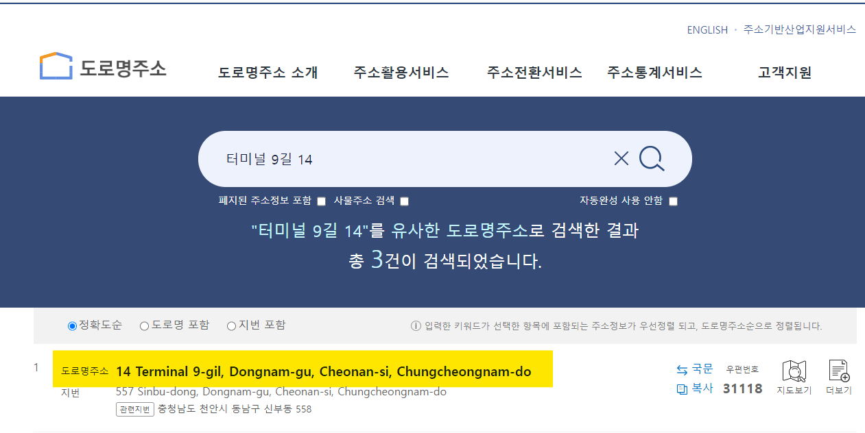 주소 옆의 영문을 클릭하면 빠르게 영문주소를 확인할 있습니다.