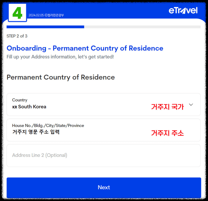 3. 여행 정보 입력: 입국 날짜와 항공편 정보를 입력합니다. 필리핀 내 체류할 숙소나 방문할 장소 등의 정보도 요구될 수 있습니다.