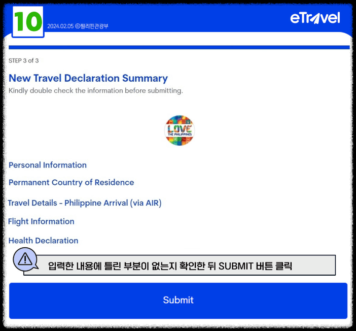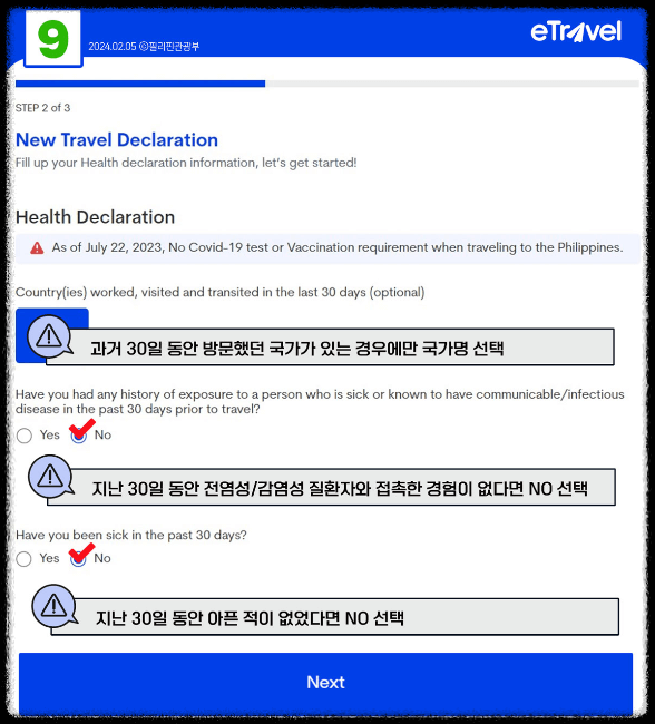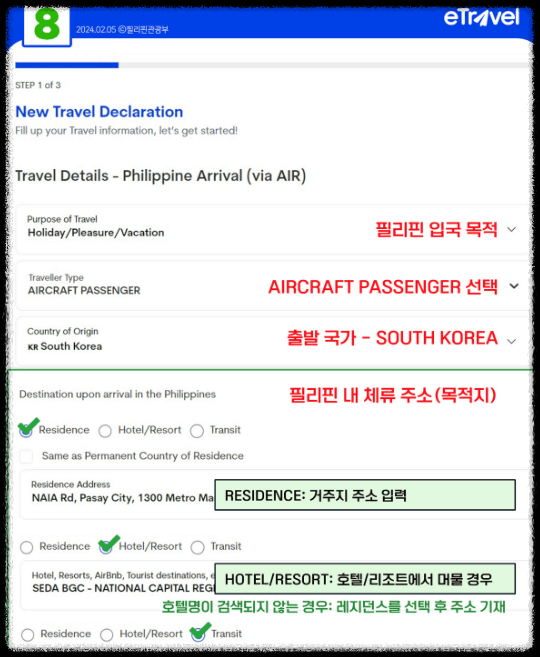 필리핀에 입국하기 위해서는 필수적으로 이트래블 양식을 작성해야 합니다.
