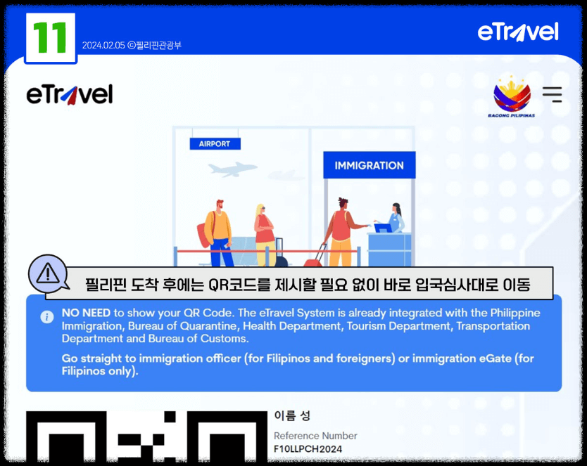 이 QR 코드는 필리핀 입국 시 공항에서 스캔하므로, 스마트폰에 저장하거나 출력해 준비해야 합니다.
