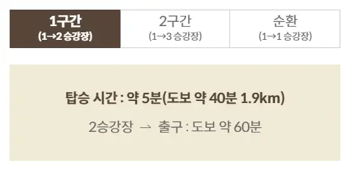모노레일 이동구간은 1구간 승강장부터 3구간 승강장까지 구분되어 있습니다.