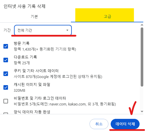 ✅ 너무 자주 삭제하면 자주 사용하는 사이트에서 다시 로그인해야 하는 번거로움이 있지만,